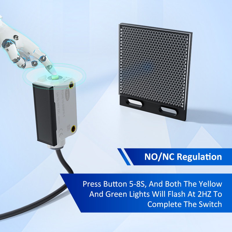 이 장치에는 고도로 지능적인 조정 기능이 장착되어 있습니다. 거리 설정은 직관적이고 편리합니다. 반사 판에 맞춰 버튼을 2-5 초 동안 누르면 4Hz에서 노란색 녹색 표시등이 성공적인 설정을 나타냅니다. 듀얼 라이트가 8Hz 비동기식으로 전환되면 고장을 나타내고 자동으로 최대 감지 거리로 전환됩니다. 정상적으로 열려있는 (NO)와 일반적으로 닫힌 (NC) 모드 사이를 전환하는 것은 똑같이 효율적입니다. 버튼을 5-8 초 동안 압박하고 듀얼 라이트는 2Hz에서 동기화되어 모드 스위치가 완료되었는지 확인합니다. 이 다중 스토 나이 호환 렌즈-반사 광전 전기 스위치는 매개 변수 조정이 그 어느 때보 다 직관적입니다.