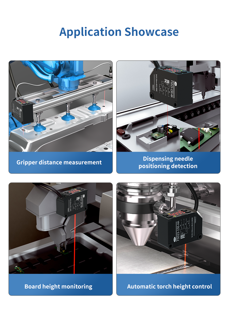 기존 센서는 종종 좁은 범위 (예 : 고정 30mm 감지 범위)로 인해 여러 장비 모델을 사용자 정의해야하므로 생산 라인 배치 비용이 급증합니다. 그러나 FSD23 시리즈 레이저 변위 센서는 자체 개발 된 광학 모듈 다이나믹 포커싱 기술을 통해 10mm ~ 250mm의 지속적으로 조정 가능한 감지 범위를 실현합니다. 이는 마이크론 칩 솔더 조인트에서 자동 판금 갭에 이르기까지 모든 시나리오에 적합합니다.