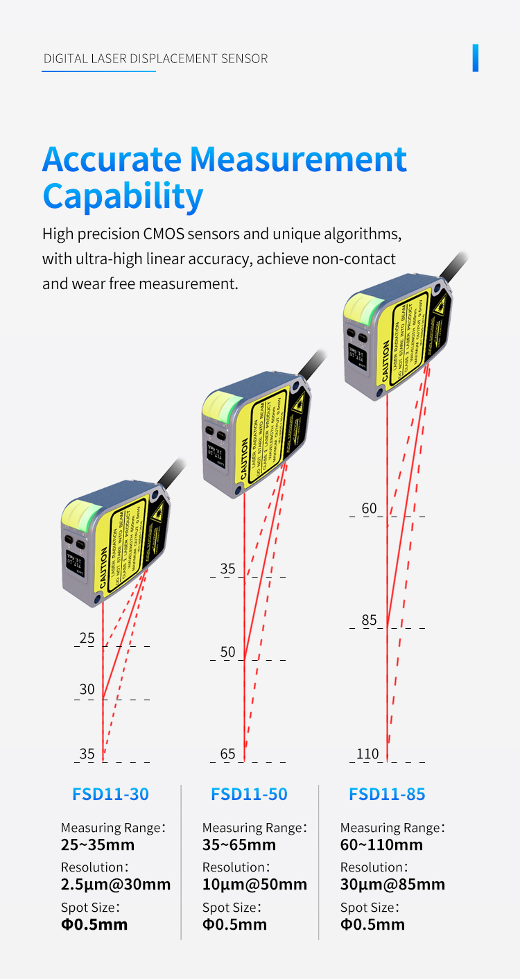 현대 산업 생산의 정밀 제어 분야에서 모든 미묘한 측정 및 위치 지정은 제품의 품질 및 생산 효율성과 직접적인 관련이 있습니다. 독특한 알고리즘으로 최적화된 Fuwei FSD11 시리즈 레이저 거리 측정 센서는 작은 물체를 안정적이고 안정적으로 감지할 수 있습니다. PCB 보드 적층 높이를 모니터링하거나 병뚜껑 개스킷의 유무를 감지하는 등 측정 데이터의 정확성을 보장할 수 있습니다. 이 고정밀 감지 기능은 생산 라인의 품질 관리를 확실하게 보장합니다.