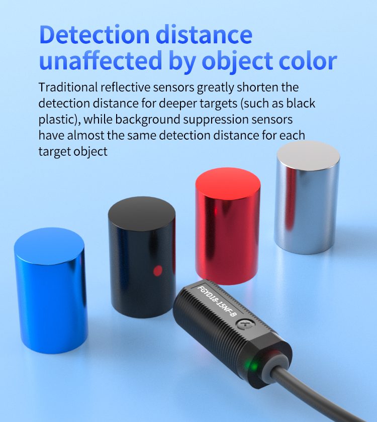 엔지니어 Zhang은 FGYD18 시리즈 배경 억제 고정밀 광전 센서를 시험하기로 결정했습니다. 그들의 눈에 띄는 기능은 "객체 색상에 관계없이 탐지 범위 유지"에 있습니다. 검은 색, 흰색 또는 반사 금속 대상을 감지하든 센서는 세트 150mm 범위 내에서 정확하게 감지하여 색상 변화로 인한 감지 고장을 효과적으로 제거합니다.