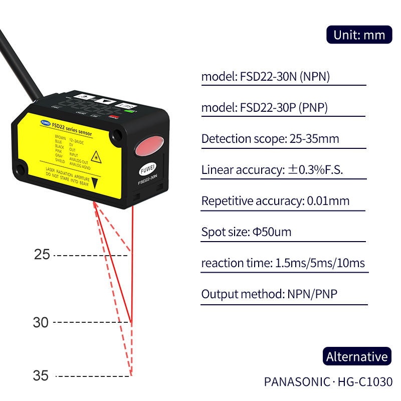 안정적이고 정확한 감지를 달성하는 방법은 무엇입니까? Fuwei Electronics의 FSD22 계열 CMOS 유형 소형 레이저 변위 센서는 이러한 문제를 해결하도록 설계되었습니다. 정밀한 캡처로 사소한 결함이 있을 여지가 없습니다.