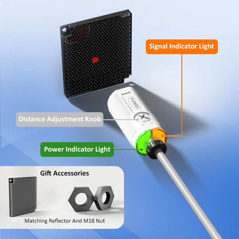 FGYS18-200NFR-T 전문 투명 병 감지 센서는 고급 렌즈 반사 원리와 코팅된 광학 필터 기술을 활용하여 투명 용기 감지 문제를 효과적으로 해결합니다. 정확한 위치 지정을 위해 가시적 적색광 점이 있는 2미터 조정 가능한 감지 범위가 특징입니다. 3중 보호 메커니즘(단락, 역극성, 과전압)과 열 변형에 강한 석영 렌즈를 탑재하여 뛰어난 간섭 방지 기능으로 열악한 산업 환경에서도 안정적인 광학 센서 투명 물체 감지 거울 반사 M18 2m 감지 거리 원통형 센서 작동을 보장하므로 자동화 생산 라인을 위한 신뢰할 수 있는 선택입니다.